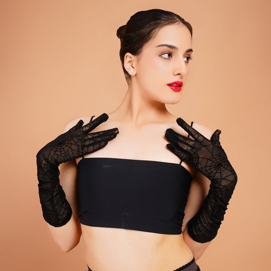 Belladonna Gloves - Black Mesh Long Gloves for Ladies