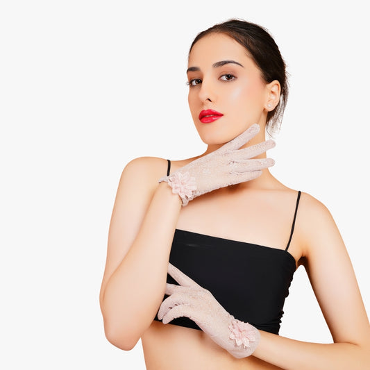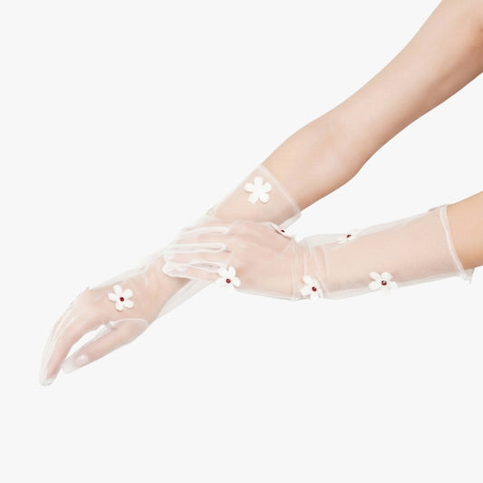Snow Drop Gloves - White Floral Tulle Gloves