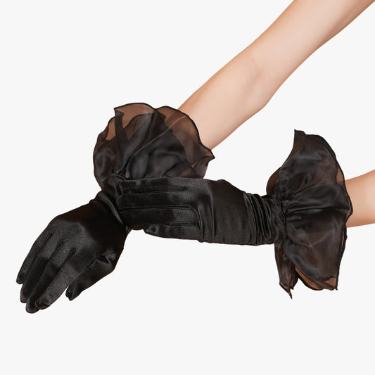 Oleander Gloves - Black Ruffled Tulle Gloves