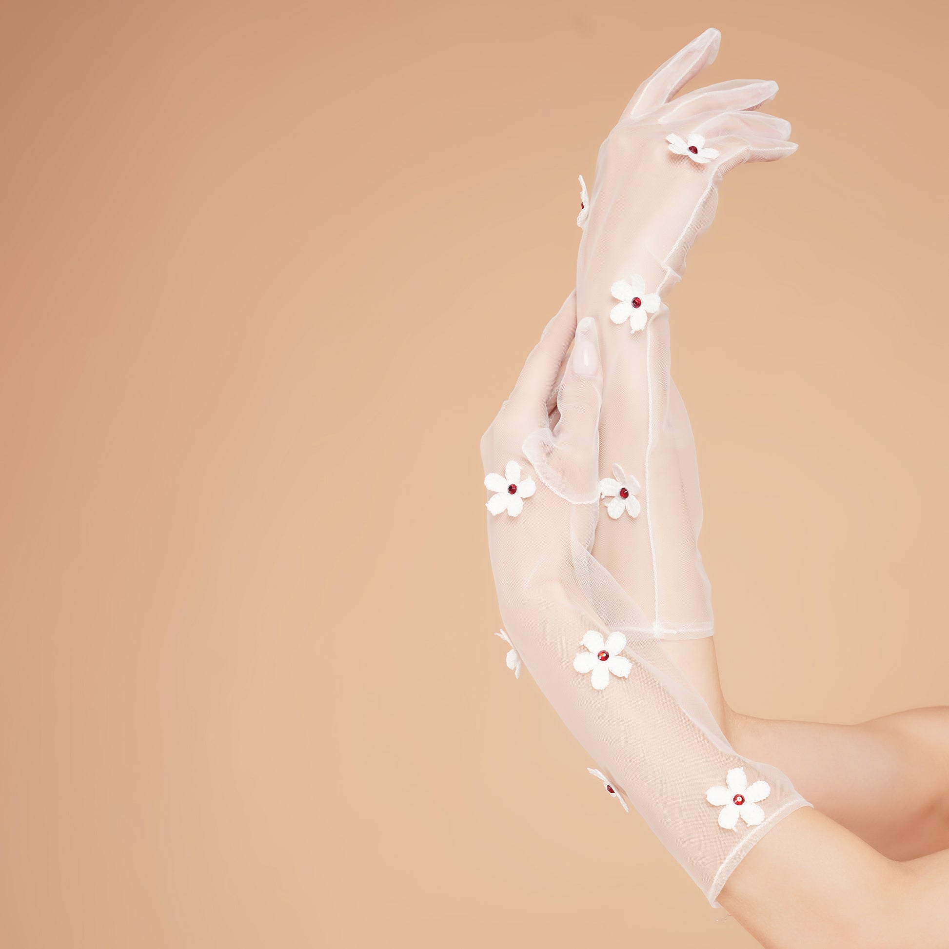 Snow Drop Gloves - White Floral Tulle Gloves for Ladies